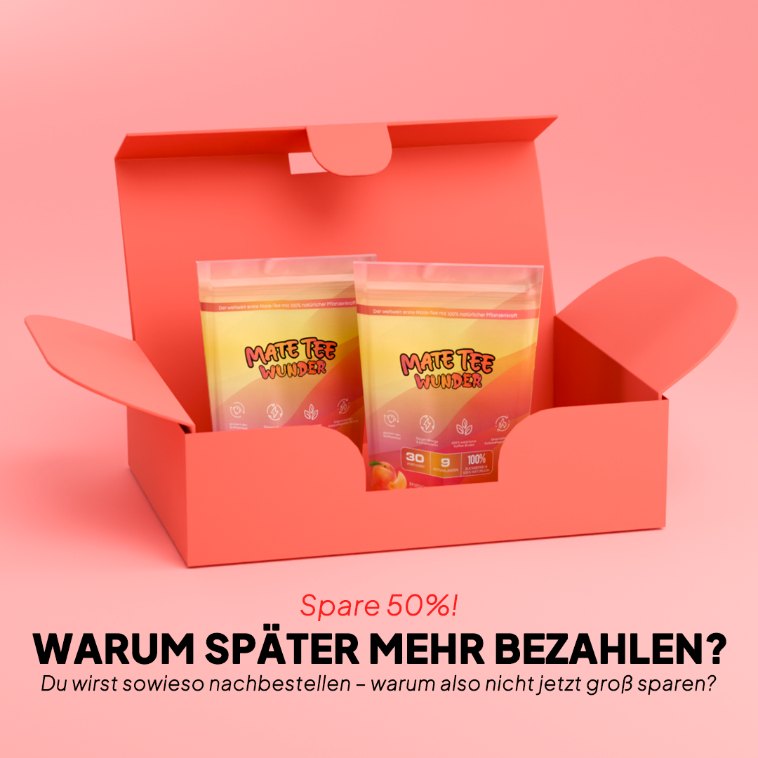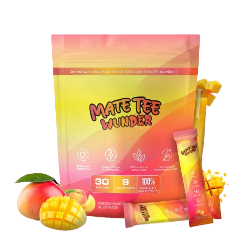 Einfach Wasser hinzufügen – für einen leckeren, schnell wirksamen Mate Wunder Tee.